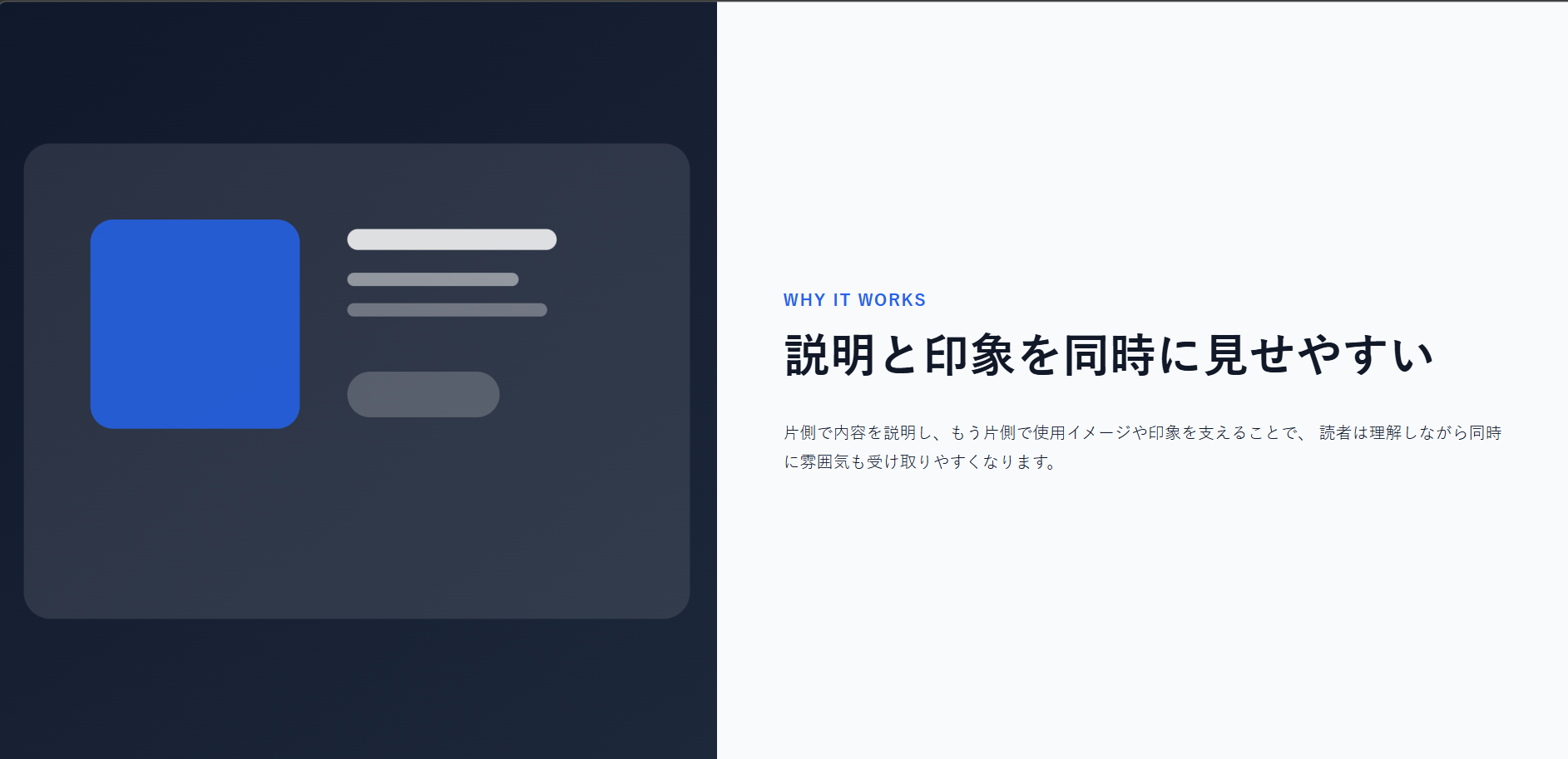 <h2>説明と印象を同時に見せやすい</h2>