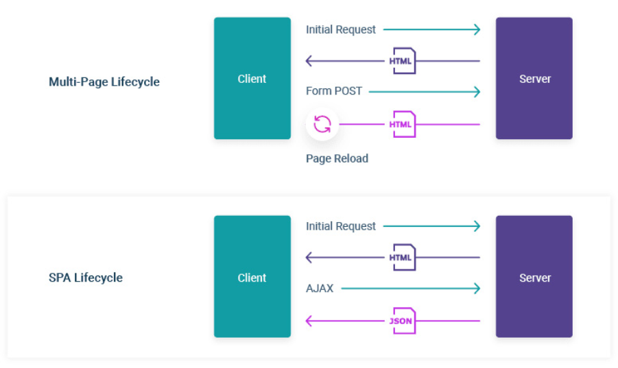 | 表示方式 | ページごとにサーバーが HTML 文書を生成 | 初回ロード後に画面を JavaScript が制御 |